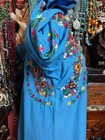 Vintage Oaxacan Mexican Blue Red Embroidered Dress Size Xl Floral Colorful Boho