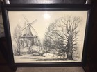 Vintage Antique German Windmill Etching,lithograph? Art Print Rare