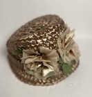 Eva Mae Bucket Hat Vintage Gold Straw Floral 1960's Vintage 3d Flower Metallic