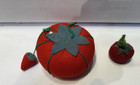 Vintage Tomato Pin Cushion With 1 Strawberry Large 2.5" Tall X 3" Dia