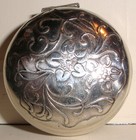 800 Silver Floral Repousse Antique Vintage Small Snuff Trinket Pill Box