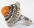 Vintage Antique Sterling Silver Egg Yolk Amber Ring Size 8.5