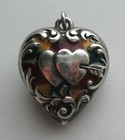 1 In Large Vintage Antique Sterling Silver Enamel Sweetheart Puffy Heart Charm