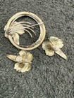 Vintage Sterling Silver Brooch Earrings Set Flower Leaves