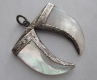 Vintage Antique Sterling Silver Mop Raj Claw Pendant Charm Mother Of Pearl Fob