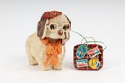 Antique Wind Up Jumping Dog Puppy Japan Fur Covered Tin Litho Toy Vintage Pom