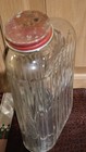 Vintage 1940s Ribbed Glass Refrigerator Water Bottle Kitchen Storage W/ Lid