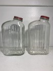Vintage Ribbed Glass Refrigerator Water Bottles Set Of 2 1 Qt Red Screw Caps
