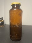 Vintage 1955 Amber Glass Refrigerator Juice Water Bottle Original Cap, 3x9.25”