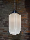Vintage Art Deco Skyscraper Milk Glass Pendant Light Chrome Canopy With Chain
