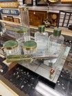 Vintage Art Deco Vanity Set In Frosted Green Glass.