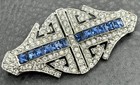 Art Deco Vintage Sterling Royal Blue Clear Rhinestone Large Brooch Pin 1930-40’s