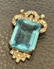 Vintage Art Deco Faux Aquamarine Rhinestone Dress Clip Brooch Pin Combo High End