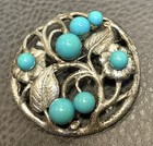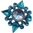 Vintage Art Deco Style Brooch Pin Teal Blue Rhinestone 1 1/2 In D