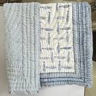 Indian Kantha Quilt Handmade Floral Print Bedspread Blue Bohemian Blanket Cover