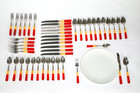 Vintage Translucent Red / Butterscotch Bakelite Catalin Silverware Set 48 Piece