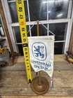 Rare Vintage Lowenbrau Beer Mini Silk Banner Wooden Statue Back Bar Sign