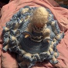 Vintage Handmade Crochet Bed Doll Spring Colors Pillow Blue Eyes Basket Rare