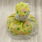 Vintage Handmade Yellow Pin Cushion With Porcelain Doll Head & Lace Accents