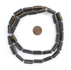 Yellow-striped Elongated Black Glass Beads 20x8mm Ghana African Multicolor