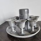 Vtg Marble Liquor Cordial Decanter Light Gray White W/ Tray & 6 Cups