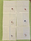 Vintage Handmade Linen Napkins Asian Themed Set Of 7