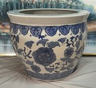 Vintage Chinese Blue/ White Porcelain Fishbowl Shape Planter Pot Indoor/outdoor