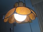 Tiffany Style Mcm Caramel Honey Slag Glass Tulip 6 Panel Hanging Lamp 14 Ft Cord