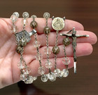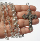 Clear Glass Sterling Silver Ornate Rosary Mary Jesus Medal