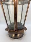 Nice Vintage Brass & Etched Glass Panes Hexagon Candle Holder 12” Lantern