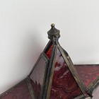 Vtg Moroccan Star Candle Lantern Red Pressed Glass Brass Hanging Tea Light 7.5"