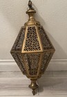 Vintage Brass Lantern Pierced Moroccan Hanging Lamp Candle Holder 10” H X 7” W
