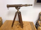 Antique Nautical Floor Standing Brass 18 Inch Telescope With Wooden Tripod Stand