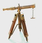 18" Brass Antique Nautical Floor Standing Telescope With Wooden Tripod Stand