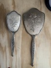 Antique Vanity Brush And Mirror Silver Plated Floral Design