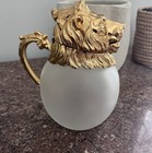 Mcm Carole Stupell Gilt Lion Head Frost Glass Pitcher+ Stirrups Hollywoodregency