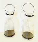 Lanterns Candle Holder Glass & Metal Hanging Carriage Set Of 2 Antique/vintage