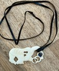 Vintage Carved Cow Bone Pendant Alaskan Inuit Bear Abalone Eskimo