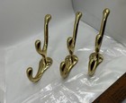 Vintage Heavy Duty Solid Brass Triple Wall Hooks For Coat, Hat, Towels Lot Of 9
