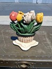 Vintage Cast Iron Tulips Vase Doorstop C.n. Foundry