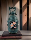 Vintage Japanese Green Cast Iron Hanging Tea Light Lantern W/ Dragons Handle