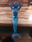 Vintage Cast Iron Mermaid Sculpture Kneeling Blue Green Statue Outdoor Garden