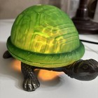 Vtg Tiffany Style Turtle Lamp Brass Cast Iron Green Glass Nightlight Art Nouveau