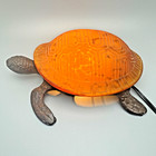 Meyda Turtle Lamp Amber Mottled Glass Cast Metal Base Tortoise Night Light 4" H