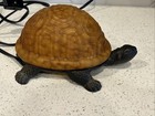Vtg Turtle Amber Glass Decorative Retro Night Light Cast Iron Style Table Lamp