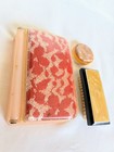Vintage Celluloid Pink Pocket Vanity Mirror Compact Tissue Holder Asian Floral