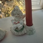 Choir Angel Ceramic Duo Taper Candle Holder Vintage White