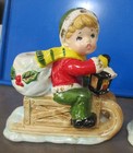 Vintage Pair Boys On Sleds Ceramic Christmas Taper Candle Holders Figurines