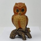 Large Vtg Mcm Ceramic Owl On Log Light Up Lamp Statue Hand Painted Works Great!