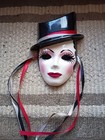 Vintage Mardi Gras Porcelain Ceramic Painted Face Mask Wall Hang Piano Eyelashes
